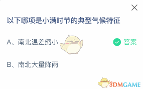 在这个游戏中,我们需要从多个选项中找出小满时节的典型气候特征。小满是二十四节气中的第八个节气,此时节意味着夏熟作物的籽粒开始灌浆饱满,但还未成熟,只是小满,还未大满。