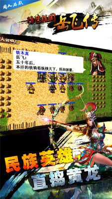 1. 玩家将操控岳飞等角色参与各种战斗,通过策略排兵布阵来应对不同敌人。