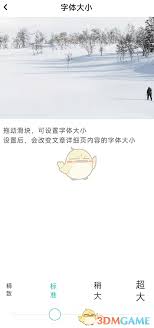 通常在文章页面,点击屏幕中央,会弹出一些操作选项。在这些选项中,仔细寻找类似“aa”或者字体样式的图标。点击这个图标后,会出现字体大小调节的滑块或者具体的字号选择框。你可以根据自己的喜好,通过拖动滑块或者选择合适的字号来增大或减小字体大小。调节到满意的字体大小后,点击页面其他空白处即可应用设置。