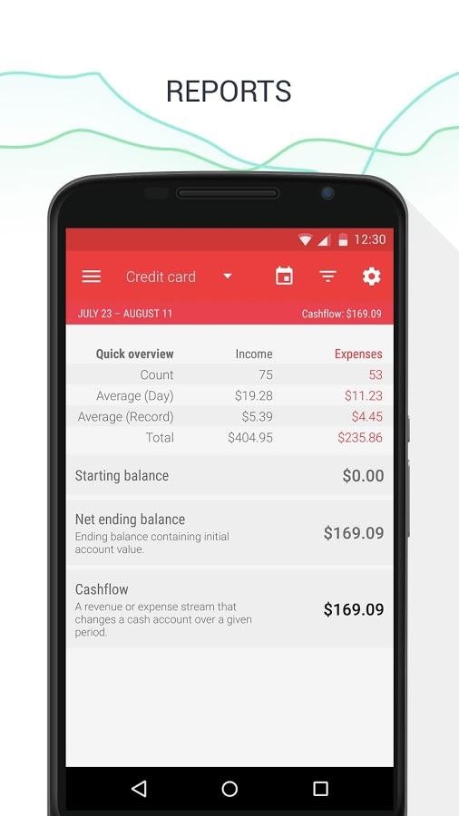 5. 在主界面查看不同时间段的收支统计图表。