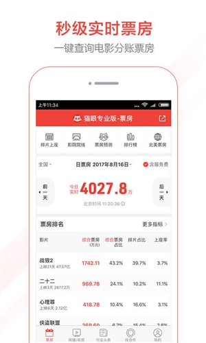 1. 数据准确性高:所提供的排片、票房等数据准确可靠。